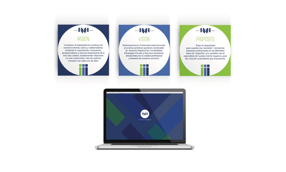 El lenguaje de comunicación de la marca HRH Consultoría, comienza con la definición de elementos simbólicos representados por tres cuadros que significan: